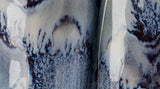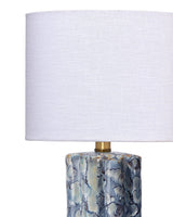 The scalloped body of this ceramic lamp is finished with reactive glazes that have been expertly fired to create vibrant patterns, masterfully updating the traditional blue and white color scheme. A thick slice of crystal-clear resin grounds the design, which is topped with an oval shade in white linen. We love this displayed as a pair on a mantle.