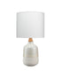 Inspired by mid-century modern design, the Alice Table Lamp features layers of neutral colored glaze on a ceramic lamp body. The petite fixture embraces different textures for added interest. Starting with a wood grain neck, greige colored glaze on top, a beige horizontal stripe around the middle and finished with a raw unfinished off-white bottom, all made by hand.