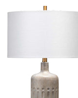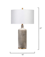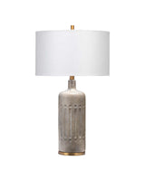 The Annex Table Lamp is the perfect addition to any casually modern space. The textured cement lamp body is accented with a subtle pattern that utilizes clean lines, while antiqued brass is used as a classic touch, to ground this piece. Paired with a white linen drum shade, this table lamp is striking in transitional to contemporary environments.
