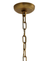 Curved ovals of glass are carefully arranged in layers and bound with strips of iron in an antique brass finish to create this spectacular chandelier. Wonderfully versatile, it can dress up a casual breakfast nook or add a homey note to a more formal setting.