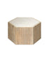 Simple, yet stunning our Argan Hexagon tables use a ribbed washed wood and white marble to create a brilliant side table that is light in feeling but large in size, perfect for any airy living room.