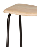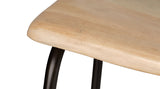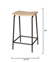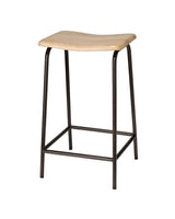 This counter-height stool pairs industrial strength with artisanal beauty. Its hand-forged iron legs, finished in a deep, matte black, rise to meet an ergonomically curved seat hand-carved from bleached mango wood. The striking ebony-and-ivory palette and sleek, contemporary lines make it visually captivating, while the craftsmanship speaks to enduring quality. Perfect for kitchens, bars, or gathering spaces, it balances comfort, texture, and timeless modern appeal.