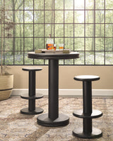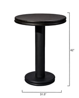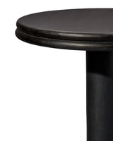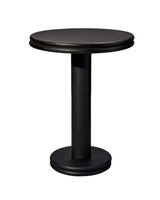 Drinks have never looked more elegant than on this sleek, satin black bar table. Its design of two simple circular surfaces connected by a single central pillar balances clean, contemporary lines with striking sophistication. Expertly hand-carved from mango wood, each table showcases natural variations in grain and finish, making every piece one of a kind. Perfect for a bar area, living room, or lounge, it can be styled with crystal glassware, a sculptural decanter, or a small vase to highlight its refined, modern appeal.