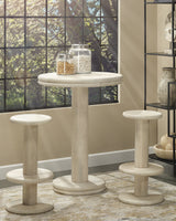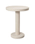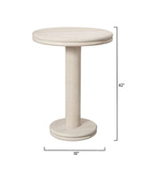 Drinks have never looked more elegant than on this sleek, bleached wooden bar table. Its design of two simple circular surfaces connected by a single central pillar balances clean, contemporary lines with striking sophistication. Expertly hand-carved from mango wood, each table showcases natural variations in grain and finish, making every piece one of a kind. Perfect for a bar area, living room, or lounge, it can be styled with crystal glassware, a sculptural decanter, or a small vase to highlight its refined, modern appeal.