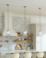 The shades of these artisan-crafted pendants were inspired by the fields of calla lilies that bloom wild in Big Sur. Featuring gracefully curved leaves in glass rimmed with a touch of metal, they hang from an adjustable antique brass rod and canopy. Traditionally hung above a table or kitchen island, they offer endless display options if you have vaulted ceilings!