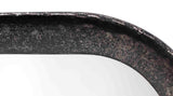 The clean lines of this contemporary wall mirror’s frame are forged of hand-distressed black metal. Featuring gently rounded corners that soften the starkness of the design without distracting and the versatility of hanging horizontally and vertically. Group two or more together for a window-inspired display or use one to add height and dimension to any wall.
