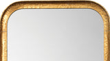 This rounded edge rectangular mirror has a narrow curved frame in gold leaf. It feels like the perfect combination of something old and something modern.