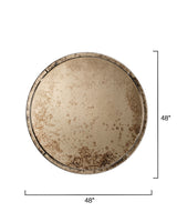 Encircled in mirrored panels and centered with antique glass, this large round mirror is finished in a warm brown patina. Its gently aged finish remains functional, while the faceted frame adds quiet dimension and elegance. Ideal above a console or vanity, it enhances interiors with light and depth. A perfect fusion of modern clarity and vintage romance, this mirror embodies timeless sophistication and refined craftsmanship.