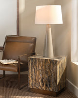 Artisans craft these tables using a dripping resin technique, producing dramatic marbling that makes each piece completely unique. Each piece displays variations in color and shading, making every table unique. The soft neutral tones, paired with a brass-finished base and versatile scale, allow these accents to integrate into any décor. Use them individually or group them to form a stylish, elegant, and functional display that enhances the room’s aesthetic.