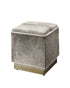 An unexpectedly elegant adaptation of a simple square hide-on-hair ottoman, the Easton's slightly more formal lines showcase the material in a unique and exciting way. The seat is softly cushioned for comfort, the sides are embellished with ribbed details, and the antique brass base adds an extra touch of opulence further elevating the footstool's simple square lines.