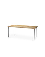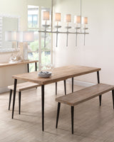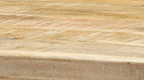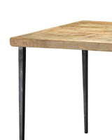 Farmhouse style hand-worked, natural wood table-tops unite with modern hammered antique iron legs for the perfect table collection.