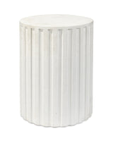 Fluted edges inspired by Roman ruins ring these circular side tables. They are made of cement and feature an antiqued neutral finish that adds to their charm. Casual yet elegant, simple yet substantial, they are a perfect choice for today’s homes. Indoor use only please.