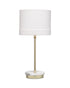 A graceful contemporary lamp with a marble & brass base give it glamour and dimension. Paired with a drum cotton shade with bold bottom band makes for the perfect modern accent lamp.