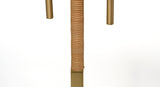 Warm and welcoming, this tropically inspired table lamp is easy, elegant, and artisan-crafted to last. Anchored by a round of antiqued brass for stability, its slender base transitions from warm metal to hand-wrapped rattan. Two bulbs nestle under the rami shade, allowing you to customize the level of brightness with one pull or two. With its delicate proportions, you can use it to brighten a dim corner or place it between two chairs to create a cozy but stylish nook.