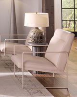 The strong metal frame of this accent chair matches the top-grain leather on the deeply cushioned seat and back, creating a cohesive contemporary look. Skilled artisans handcraft each chair to ensure exceptional comfort and durability. The result is a luxurious, inviting seat that immediately draws attention. Its classic lines combined with modern craftsmanship provide both elegance and practical function, making it a signature piece for any home.