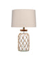 A clear glass jar table lamp wrapped in a beachy natural jute net makes the perfect coastal casual lamp.