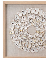 A revolving pattern of unique shell shapes create a circular pattern of organic beauty. Natural colors and textures of radiate outward while drawing you into this stunner from the sea. As if this wall art piece washed ashore, specifically for your wall.