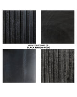 Inspired by European clockworks, these unique accent tables' clean, modern lines are distinguished by richly textural ribbing around the tables' top halves. Each one is expertly artisan carved from the mango tree.