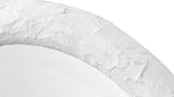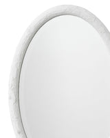 This simple oval wall mirror is enlivened with a richly textured resin frame. The organic patterns created add just the right touch of intrigue keeping the look simple and sleek, and yet still elevated. The Ovation is available in charcoal or white. Each beveled mirror measures three by two feet and can be hung horizontally or vertically to suit your décor.