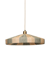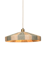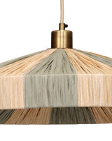 Look up at this tropically inspired pendant lamp, and you will see the parasol that inspired its design, as both the interior and exterior of the lighting fixture are fully wrapped in natural and sage green raffia. Step back and look again, and its clean lines, antiqued brass hardware, and taupe fabric cord come into focus. The result feels both relaxed and refined. This fixture works beautifully in styles from coastal to eclectic. Hang one above a dining table or group several in varied heights and sizes to create a sculptural element over a larger table or within a high-ceiling entryway.