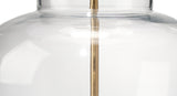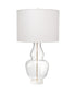 The delicacy of this gourd lamp’s hand-blown glass base is further elevated by a cloud-like, off-white linen drum shade that gently diffuses light while allowing the slim antique brass rod to remain subtly visible. Skilled artisans shape the heavy-weight glass with remarkable precision, grounding the piece on a smooth white marble disk and completing the design with a coordinating cylindrical brass finial that adds refinement and balance.