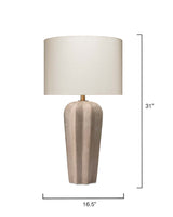 The juxtaposition of the industrial concrete finish on a sophisticated form elevates this table lamp to a refined combination, perfect for any space.