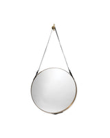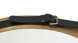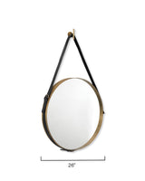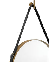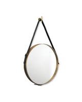 This gorgeous wall mirror brings the natural allure of rugged buff leather cowhide into your home as the frame and hanging strap of this fantastic wall mirror. The non-adjustable strap hangs from an included brass knob, a wonderful finishing detail.