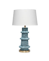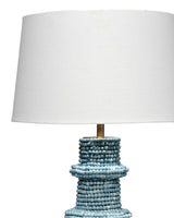 Mango wood beads are artisan carved and finished in soft shades of blue, and hand-strung onto metal wire to form the playful yet supremely stylish base of these remarkable table lamps. Each bead is as unique as the natural material it is formed of, and these variances in shading, size, and finish create mesmerizing one-of-a-kind patterns, ensuring that no two are identical. Perfect in pairs, place on a nightstand or buffet for a casually chic way to illuminate up any modern décor.