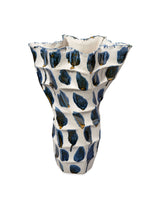 Artfully handcrafted from fine ceramic, these bright and cheerful vessels showcase bold splashes of blue reactive glaze. To enhance their organic shapes, the ruffled openings are rimmed in the same hue. The glazing technique reacts uniquely on each piece, ensuring that no two are completely identical.