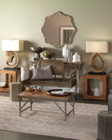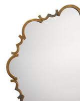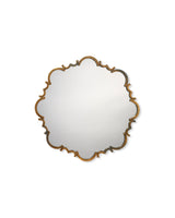 A modern yet traditional piece with a scalloped edge frame in a hand worked burnished antique brass finish.