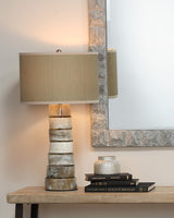 The Stacked Horn Table Lamp is an artful arrangement of horn, assembled in an organic pillar shape of soft natural colors.