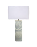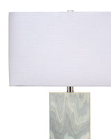 This thoughtfully crafted table lamp unifies natural elements in its base. Wood evokes earth, hand-applied lacquer patterns suggest fire, and the calming palette reflects water. A simple rectangular off-white linen shade completes the design. Place it on an accent table or in a reading nook to create a restorative, calming atmosphere. Each lamp brings balance, craftsmanship, and serene beauty to any room.