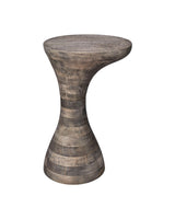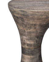 Handcrafted from solid mango wood, this sculptural side table features softly curved lines and a gray-washed finish that highlights the rich natural grain. Subtle striping adds dimension and warmth, while the fluid silhouette lends natural beauty to any setting. Perfect beside a chair, sofa, or bed, it strikes a harmonious balance between rustic craftsmanship and contemporary sophistication, bringing quiet texture and timeless ease to your space.