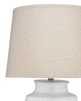 This white table lamp has a subtle texture traced around the lamp body, creating a coastal elegance yet whimsical piece for any room.